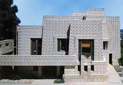 Built in 1924 for retailer Charles Ennis and his wife Mabel, the Ennis House was designed by Frank Lloyd Wright and built by his son, architect Lloyd Wright. The house is the last and largest of the elder Wright’s four Los Angeles-area “textile block” houses which feature patterned and perforated concrete blocks that give a unique textural appearance to both their exteriors and interiors. The house and chauffeur’s quarters span roughly 6,200 square feet and were constructed of more than 27,000 concrete blocks; all made by hand using decomposed granite extracted from the site.